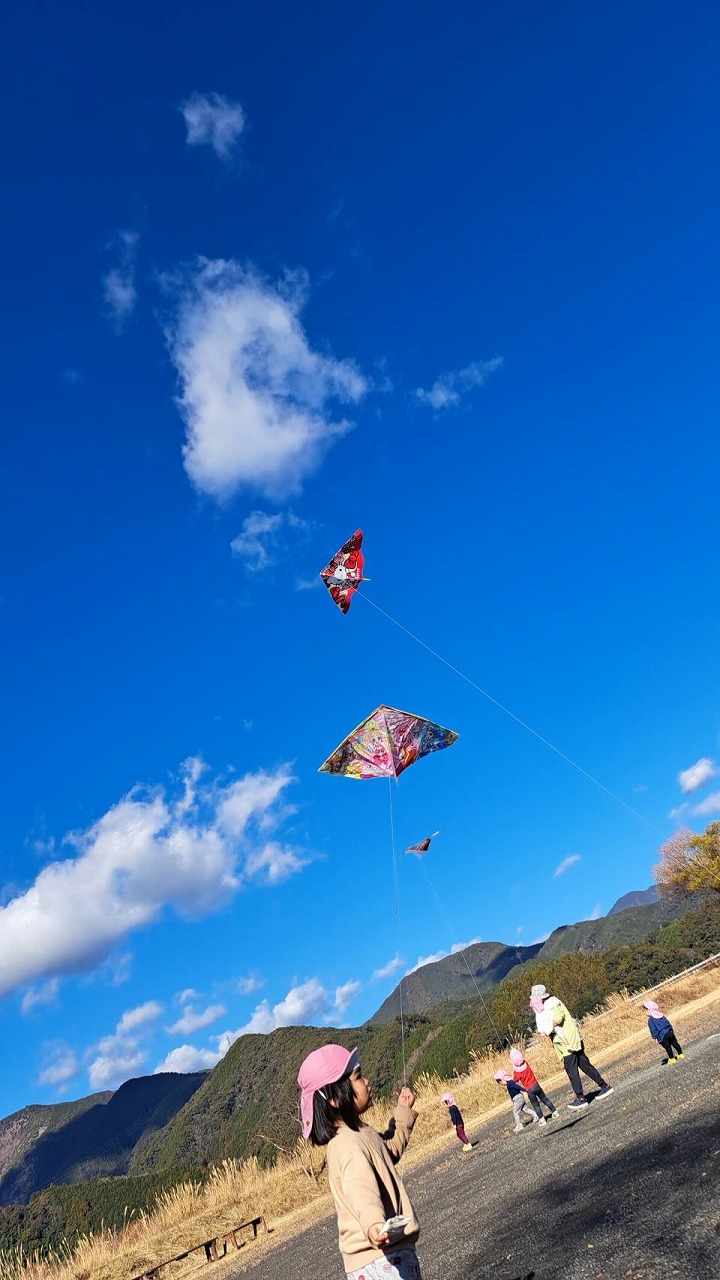 先生に糸の持ち方を教えてもらって上手に揚げています