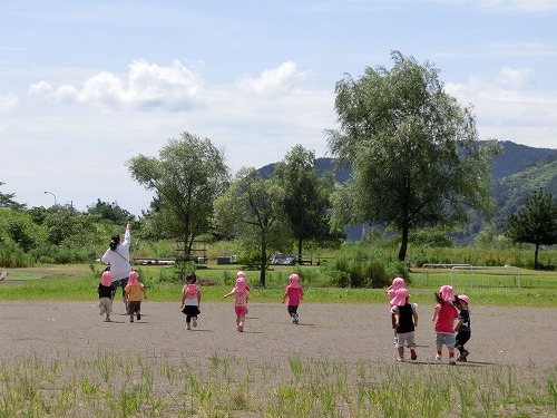 天気の良い日は、広い河川敷で遊びます(^O^)